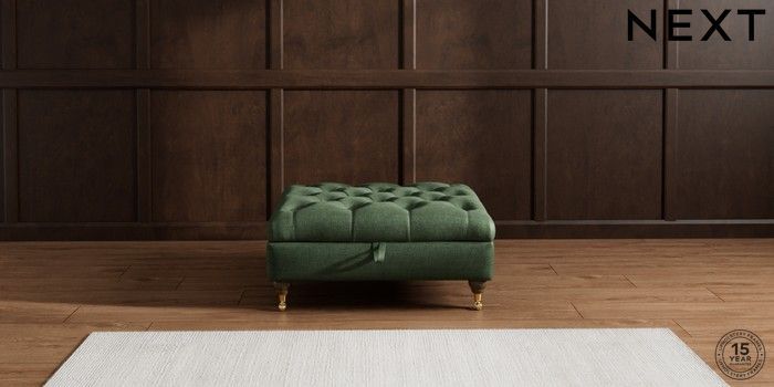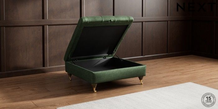 7.2.10 Gosford II Deep Sit Extra Large Storage Footstool Luxe Chenille Dark Green Castor - Mid | Made Click here to use our website with more accessibility support, for example screen readers