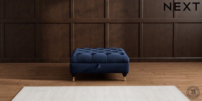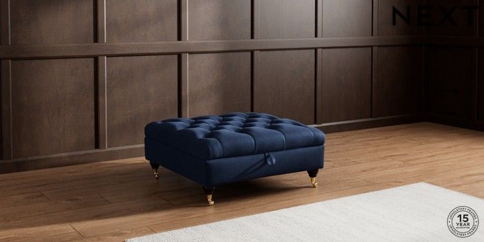 7.2.10 Gosford II Deep Sit Extra Large Storage Footstool Luxe Chenille Navy Blue Castor - Dark | Made Click here to use our website with more accessibility support, for example screen readers