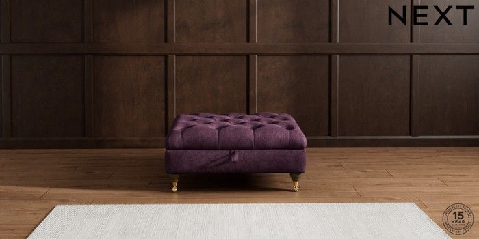 7.2.10 Gosford II Deep Sit Extra Large Storage Footstool Plush Chenille Dark Plum Purple Castor - Mid | Made Click here to use our website with more accessibility support, for example screen readers