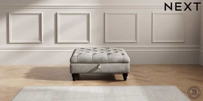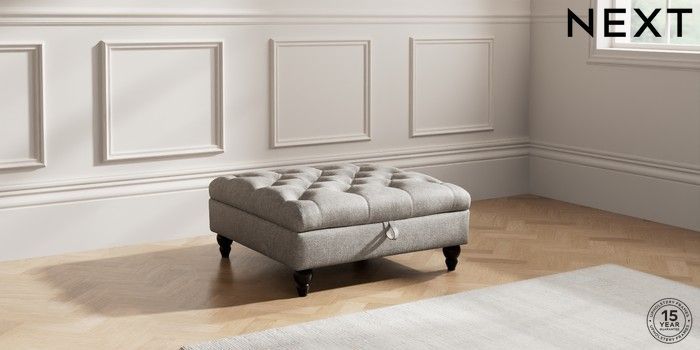 7.2.10 Gosford II Deep Sit Extra Large Storage Footstool Plush Chenille Light Grey Low Turned - Dark | Made Click here to use our website with more accessibility support, for example screen readers
