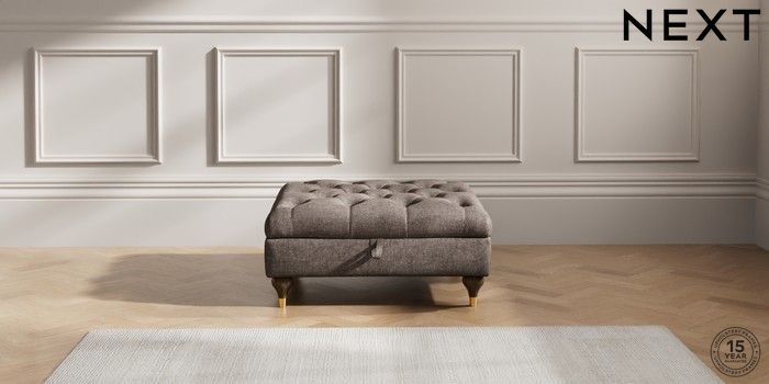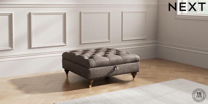 7.2.10 Gosford II Deep Sit Extra Large Storage Footstool Plush Chenille Mink Brown Modern Turned Metal Cap - Mid | Made Click here to use our website with more accessibility support, for example screen readers
