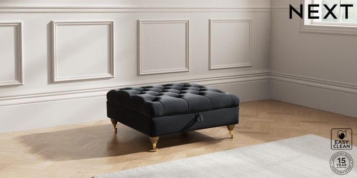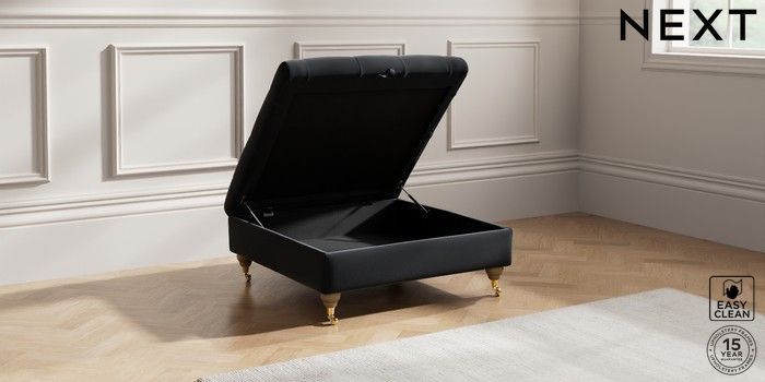 7.2.10 Gosford II Deep Sit Extra Large Storage Footstool Plush Velvet Easy Clean Charcoal Grey Castor - Light | Made Click here to use our website with more accessibility support, for example screen readers