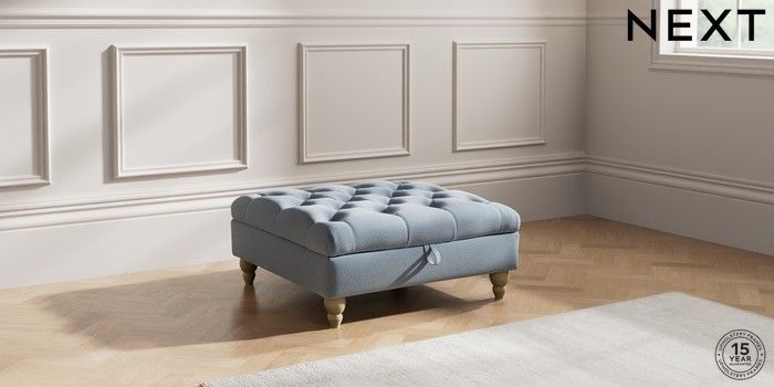 7.2.10 Gosford II Deep Sit Extra Large Storage Footstool Relaxed Linen Look Mid Blue Low Turned - Light | Made Click here to use our website with more accessibility support, for example screen readers