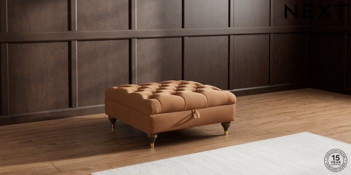 7.2.10 Gosford II Deep Sit Extra Large Storage Footstool Ripple Chenille Mid Rust Brown Modern Turned Metal Cap - Mid | Made Click here to use our website with more accessibility support, for example screen readers