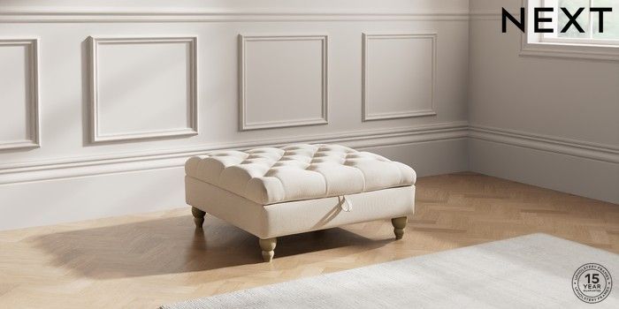 7.2.10 Gosford II Deep Sit Extra Large Storage Footstool Studio Chenille Oyster Low Turned - Light | Made Click here to use our website with more accessibility support, for example screen readers