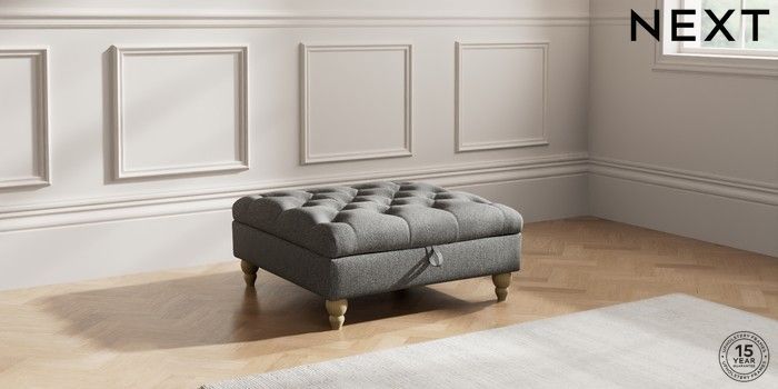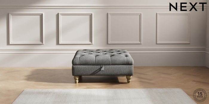 7.2.10 Gosford II Deep Sit Extra Large Storage Footstool Tweedy Chenille Dark Grey Low Turned - Light | Made Click here to use our website with more accessibility support, for example screen readers