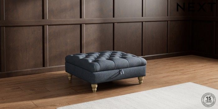 7.2.10 Gosford II Deep Sit Extra Large Storage Footstool Tweedy Chenille Navy Blue Low Turned - Light | Made Click here to use our website with more accessibility support, for example screen readers