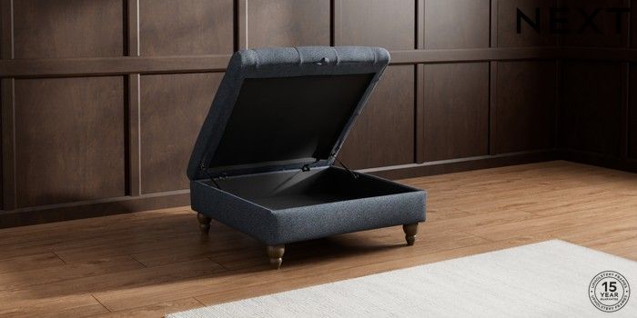 7.2.10 Gosford II Deep Sit Extra Large Storage Footstool Tweedy Chenille Navy Blue Low Turned - Mid | Made Click here to use our website with more accessibility support, for example screen readers