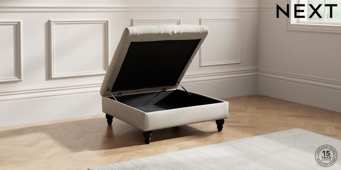 7.2.10 Gosford II Deep Sit Extra Large Storage Footstool Tweedy Chenille Oyster Low Turned - Dark | Made Click here to use our website with more accessibility support, for example screen readers