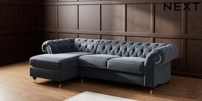7.2.10 Gosford II Deep Sit Medium Sofa Chaise - Left Hand Boucle Chenille Dark Slate Blue Castor - Dark | Made Click here to use our website with more accessibility support, for example screen readers
