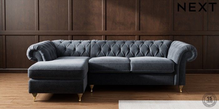 7.2.10 Gosford II Deep Sit Medium Sofa Chaise - Left Hand Boucle Chenille Dark Slate Blue Castor - Light | Made Click here to use our website with more accessibility support, for example screen readers