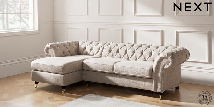 7.2.10 Gosford II Deep Sit Medium Sofa Chaise - Left Hand Boucle Chenille Light Natural Castor - Dark | Made Click here to use our website with more accessibility support, for example screen readers