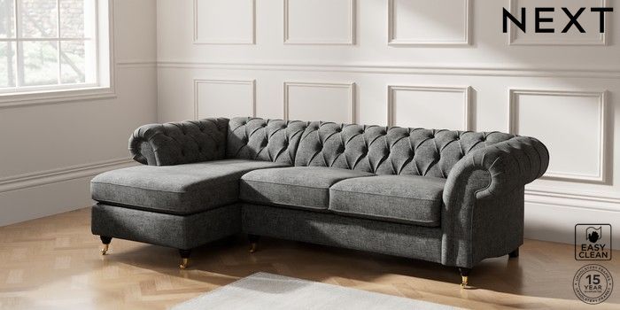 7.2.10 Gosford II Deep Sit Medium Sofa Chaise - Left Hand Boucle Weave Easy Clean Charcoal Grey Castor - Dark | Made Click here to use our website with more accessibility support, for example screen readers