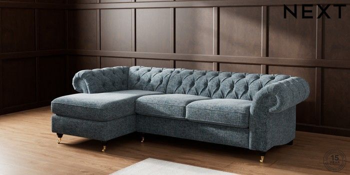 7.2.10 Gosford II Deep Sit Medium Sofa Chaise - Left Hand Chunky Chenille Dark Navy Blue Castor - Dark | Made Click here to use our website with more accessibility support, for example screen readers