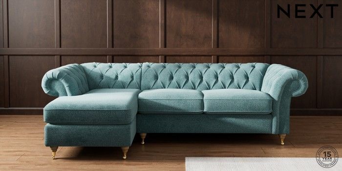 7.2.10 Gosford II Deep Sit Medium Sofa Chaise - Left Hand Chunky Chenille Mid Teal Green Castor - Light | Made Click here to use our website with more accessibility support, for example screen readers