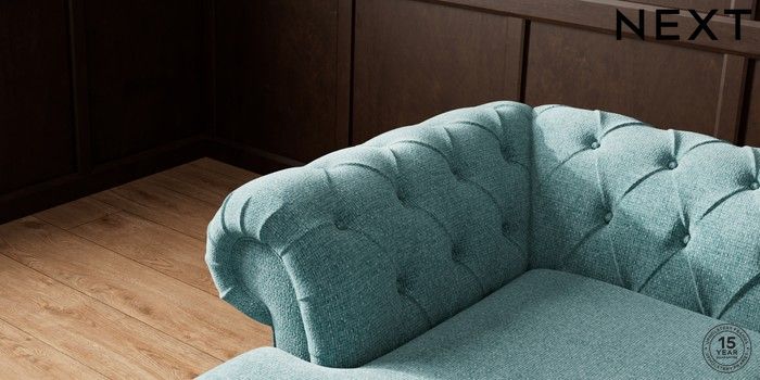 7.2.10 Gosford II Deep Sit Medium Sofa Chaise - Left Hand Chunky Chenille Mid Teal Green Low Turned - Dark | Made Click here to use our website with more accessibility support, for example screen readers