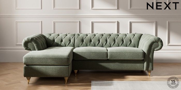 7.2.10 Gosford II Deep Sit Medium Sofa Chaise - Left Hand Chunky Texture Mid Forest Green Castor - Light | Made Click here to use our website with more accessibility support, for example screen readers