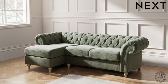 7.2.10 Gosford II Deep Sit Medium Sofa Chaise - Left Hand Chunky Texture Mid Forest Green Low Turned - Light | Made Click here to use our website with more accessibility support, for example screen readers