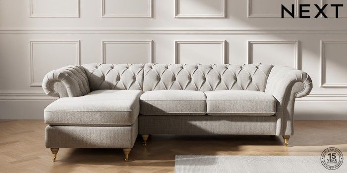 7.2.10 Gosford II Deep Sit Medium Sofa Chaise - Left Hand Chunky Weave Dove Grey Castor - Light | Made Click here to use our website with more accessibility support, for example screen readers