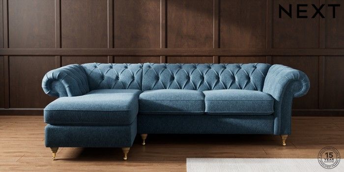 7.2.10 Gosford II Deep Sit Medium Sofa Chaise - Left Hand Cotswold Chenille Dark Blue Castor - Light | Made Click here to use our website with more accessibility support, for example screen readers