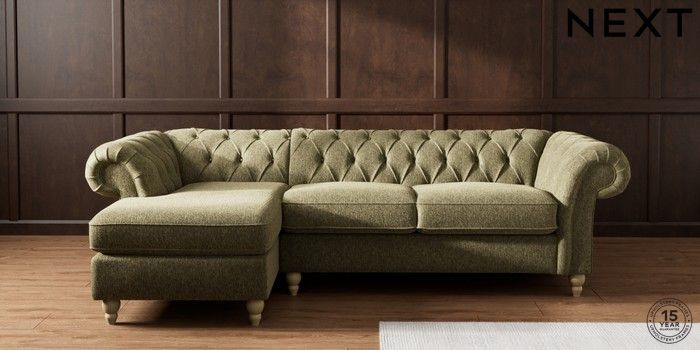 7.2.10 Gosford II Deep Sit Medium Sofa Chaise - Left Hand Cotswold Chenille Dark Green Low Turned - Light | Made Click here to use our website with more accessibility support, for example screen readers