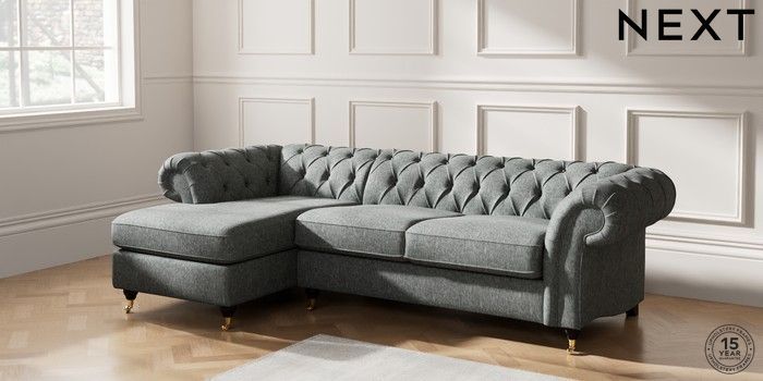 7.2.10 Gosford II Deep Sit Medium Sofa Chaise - Left Hand Cotswold Chenille Dark Grey Castor - Dark | Made Click here to use our website with more accessibility support, for example screen readers