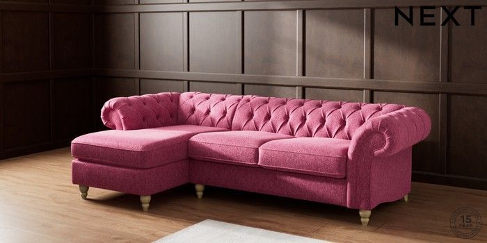 7.2.10 Gosford II Deep Sit Medium Sofa Chaise - Left Hand Cotswold Chenille Dark Raspberry Pink Low Turned - Light | Made Click here to use our website with more accessibility support, for example screen readers