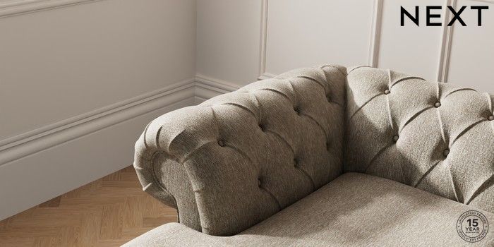 7.2.10 Gosford II Deep Sit Medium Sofa Chaise - Left Hand Cotswold Chenille Mid Mink Brown Modern Turned Metal Cap - Mid | Made Click here to use our website with more accessibility support, for example screen readers