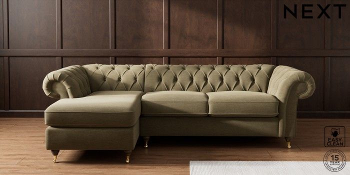 7.2.10 Gosford II Deep Sit Medium Sofa Chaise - Left Hand Fine Chenille Easy Clean Dark Moss Green Castor - Mid | Made Click here to use our website with more accessibility support, for example screen readers