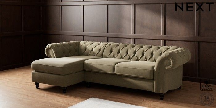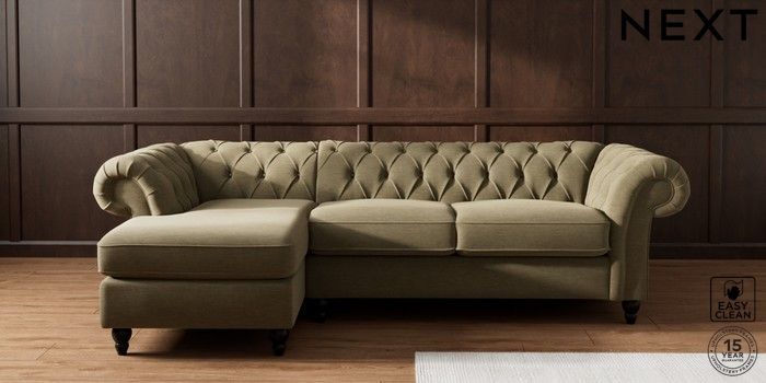 7.2.10 Gosford II Deep Sit Medium Sofa Chaise - Left Hand Fine Chenille Easy Clean Dark Moss Green Low Turned - Dark | Made Click here to use our website with more accessibility support, for example screen readers