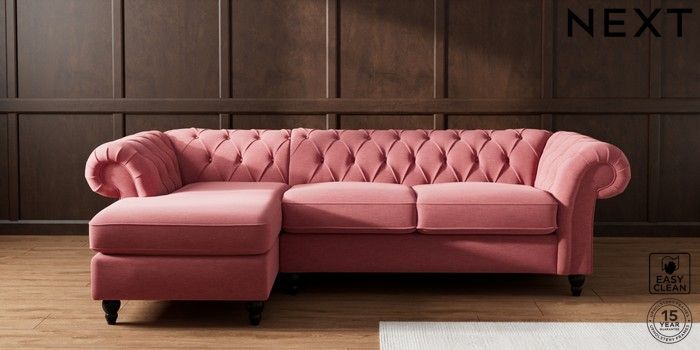7.2.10 Gosford II Deep Sit Medium Sofa Chaise - Left Hand Fine Chenille Easy Clean Mid Pink Low Turned - Dark | Made Click here to use our website with more accessibility support, for example screen readers