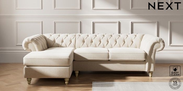 7.2.10 Gosford II Deep Sit Medium Sofa Chaise - Left Hand Fine Chenille Easy Clean Oyster Low Turned - Light | Made Click here to use our website with more accessibility support, for example screen readers