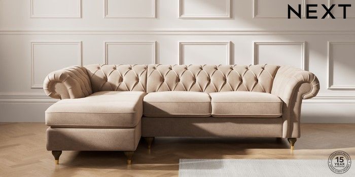 7.2.10 Gosford II Deep Sit Medium Sofa Chaise - Left Hand Luxe Chenille Mid Natural Modern Turned Metal Cap - Mid | Made Click here to use our website with more accessibility support, for example screen readers