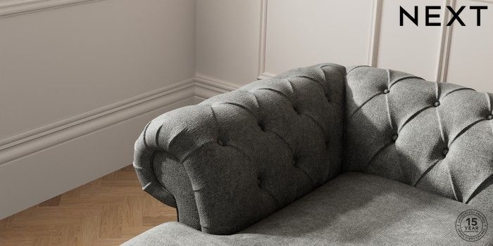 7.2.10 Gosford II Deep Sit Medium Sofa Chaise - Left Hand Plush Chenille Dark Grey Modern Turned Metal Cap - Mid | Made Click here to use our website with more accessibility support, for example screen readers