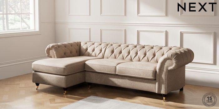 7.2.10 Gosford II Deep Sit Medium Sofa Chaise - Left Hand Plush Chenille Mid Natural Castor - Dark | Made Click here to use our website with more accessibility support, for example screen readers