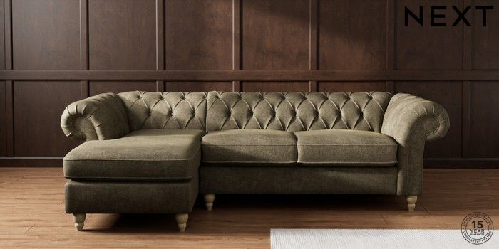 7.2.10 Gosford II Deep Sit Medium Sofa Chaise - Left Hand Plush Chenille Moss Green Low Turned - Light | Made Click here to use our website with more accessibility support, for example screen readers