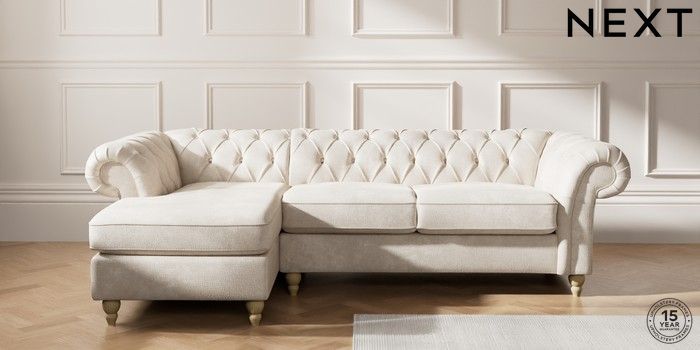 7.2.10 Gosford II Deep Sit Medium Sofa Chaise - Left Hand Plush Chenille Oyster Low Turned - Light | Made Click here to use our website with more accessibility support, for example screen readers
