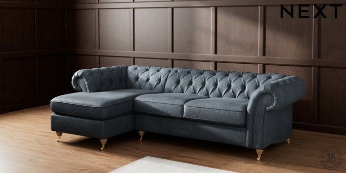 7.2.10 Gosford II Deep Sit Medium Sofa Chaise - Left Hand Plush Chenille Slate Blue Castor - Light | Made Click here to use our website with more accessibility support, for example screen readers