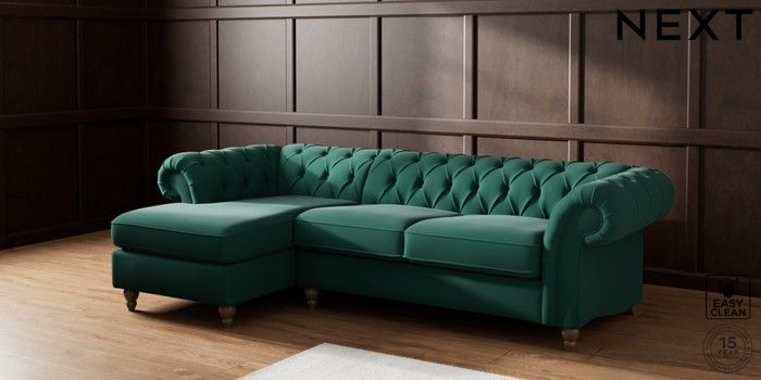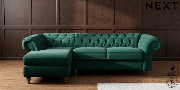 7.2.10 Gosford II Deep Sit Medium Sofa Chaise - Left Hand Plush Velvet Easy Clean Bottle Green Low Turned - Mid | Made Click here to use our website with more accessibility support, for example screen readers