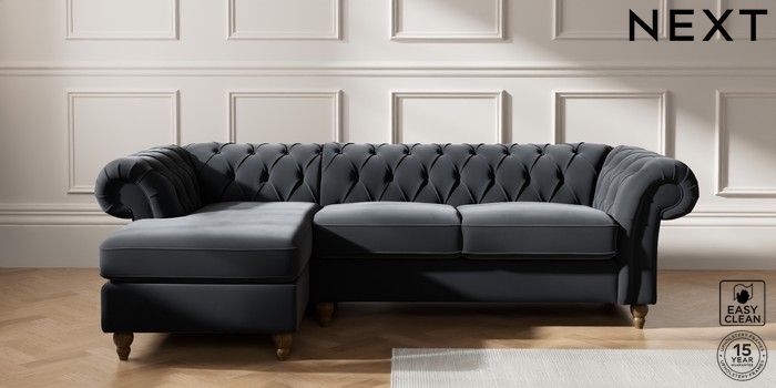 7.2.10 Gosford II Deep Sit Medium Sofa Chaise - Left Hand Plush Velvet Easy Clean Charcoal Grey Low Turned - Mid | Made Click here to use our website with more accessibility support, for example screen readers