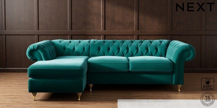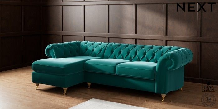 7.2.10 Gosford II Deep Sit Medium Sofa Chaise - Left Hand Plush Velvet Easy Clean Juniper Green Castor - Light | Made Click here to use our website with more accessibility support, for example screen readers