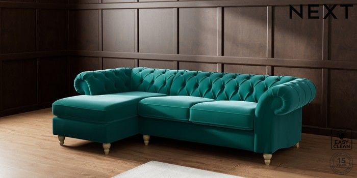 7.2.10 Gosford II Deep Sit Medium Sofa Chaise - Left Hand Plush Velvet Easy Clean Juniper Green Low Turned - Light | Made Click here to use our website with more accessibility support, for example screen readers