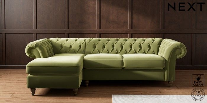 7.2.10 Gosford II Deep Sit Medium Sofa Chaise - Left Hand Plush Velvet Easy Clean Mid Olive Green Low Turned - Mid | Made Click here to use our website with more accessibility support, for example screen readers