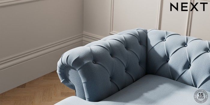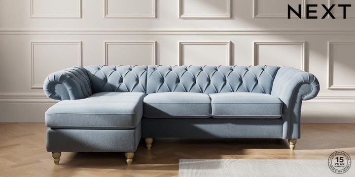 7.2.10 Gosford II Deep Sit Medium Sofa Chaise - Left Hand Relaxed Linen Look Mid Blue Low Turned - Light | Made Click here to use our website with more accessibility support, for example screen readers