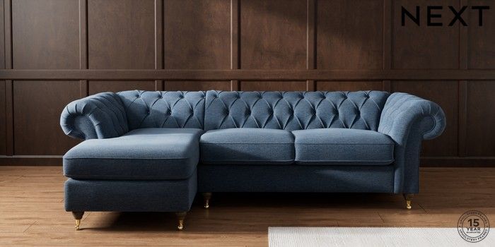 7.2.10 Gosford II Deep Sit Medium Sofa Chaise - Left Hand Ripple Chenille Dark Blue Castor - Mid | Made Click here to use our website with more accessibility support, for example screen readers
