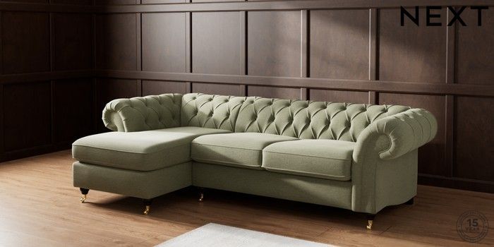 7.2.10 Gosford II Deep Sit Medium Sofa Chaise - Left Hand Ripple Chenille Mid Moss Green Castor - Dark | Made Click here to use our website with more accessibility support, for example screen readers
