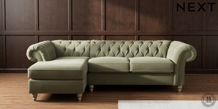 7.2.10 Gosford II Deep Sit Medium Sofa Chaise - Left Hand Ripple Chenille Mid Moss Green Low Turned - Light | Made Click here to use our website with more accessibility support, for example screen readers