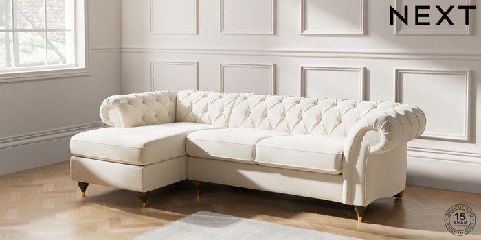 7.2.10 Gosford II Deep Sit Medium Sofa Chaise - Left Hand Ripple Chenille Oyster Modern Turned Metal Cap - Mid | Made Click here to use our website with more accessibility support, for example screen readers