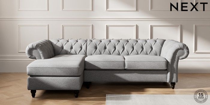 7.2.10 Gosford II Deep Sit Medium Sofa Chaise - Left Hand Studio Chenille Mid Grey Low Turned - Dark | Made Click here to use our website with more accessibility support, for example screen readers