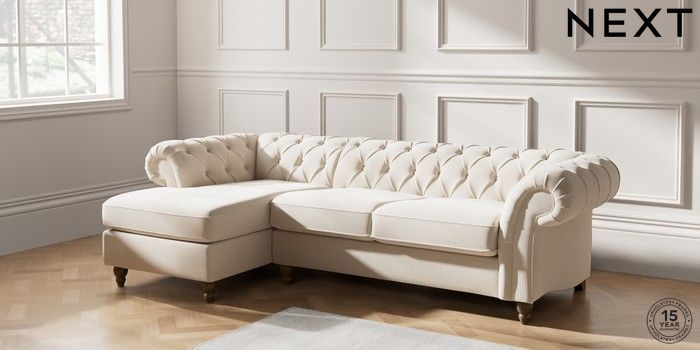 7.2.10 Gosford II Deep Sit Medium Sofa Chaise - Left Hand Studio Chenille Oyster Low Turned - Mid | Made Click here to use our website with more accessibility support, for example screen readers